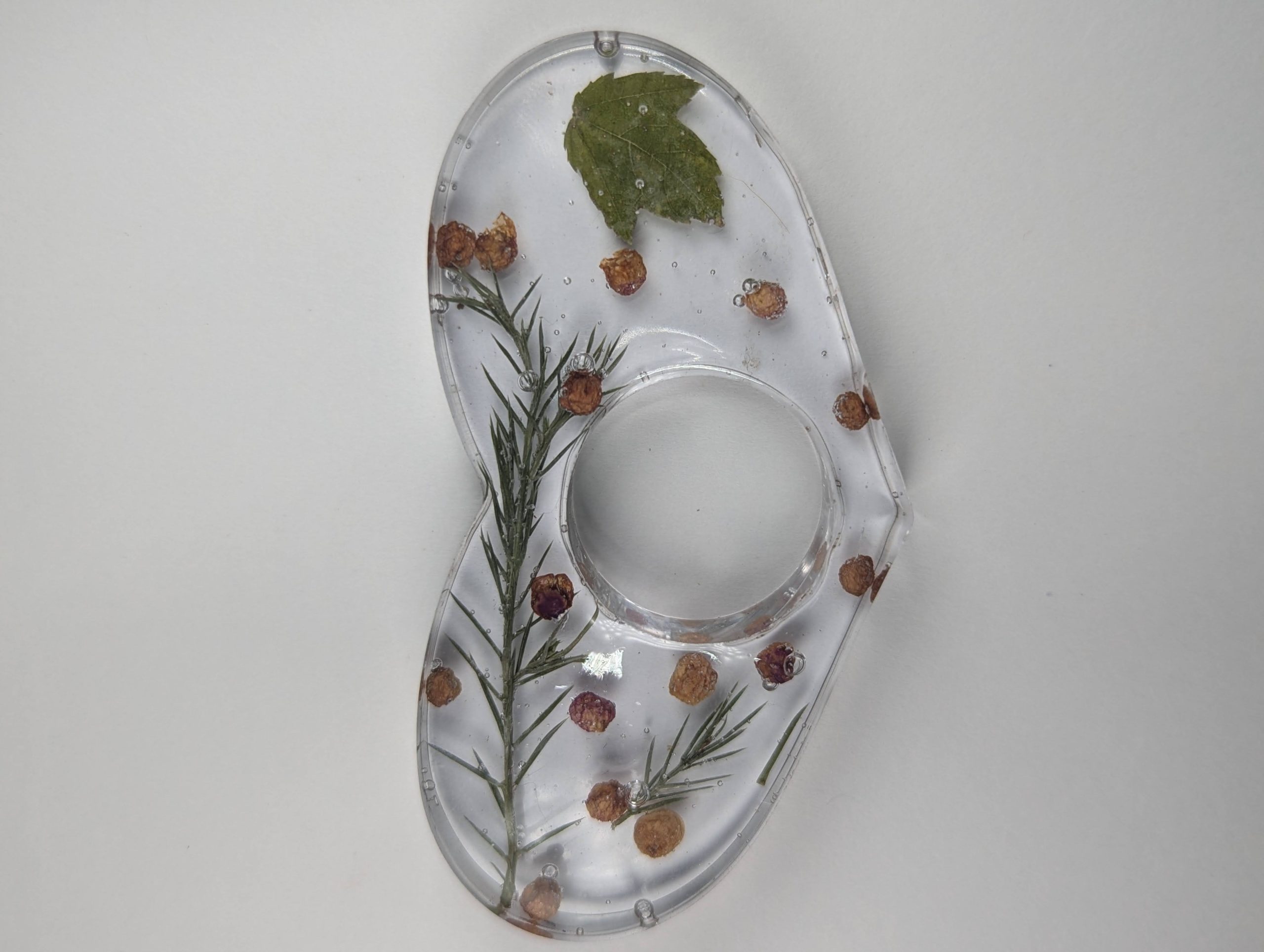 A handcrafted clear resin page holder featuring real dried flowers, leaves, and seed pods. Smooth, polished, and perfect for one-handed reading.