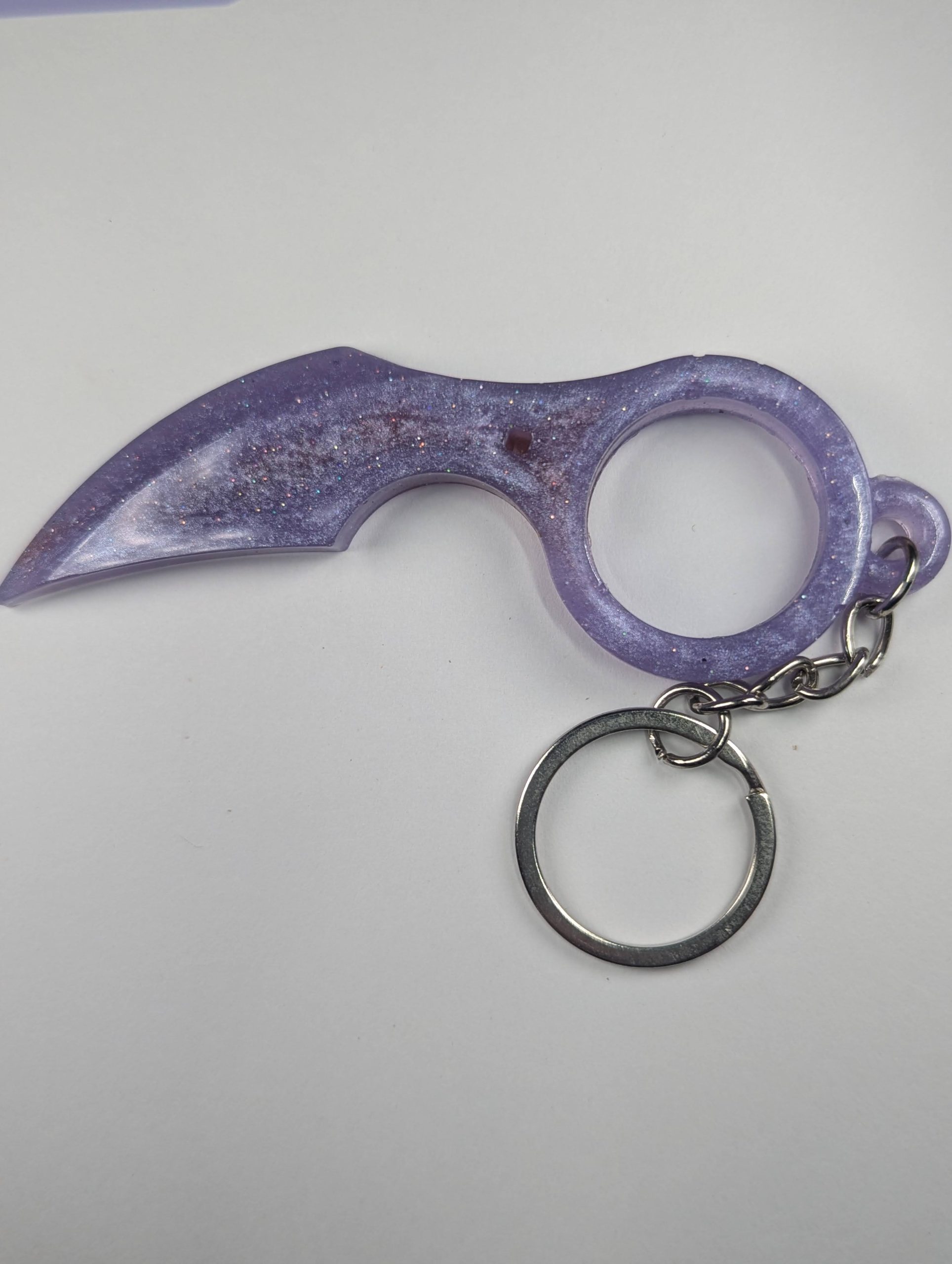 A handcrafted purple resin keychain featuring a swirling galaxy-like shimmer. Smooth, unique, and perfect for everyday carry.